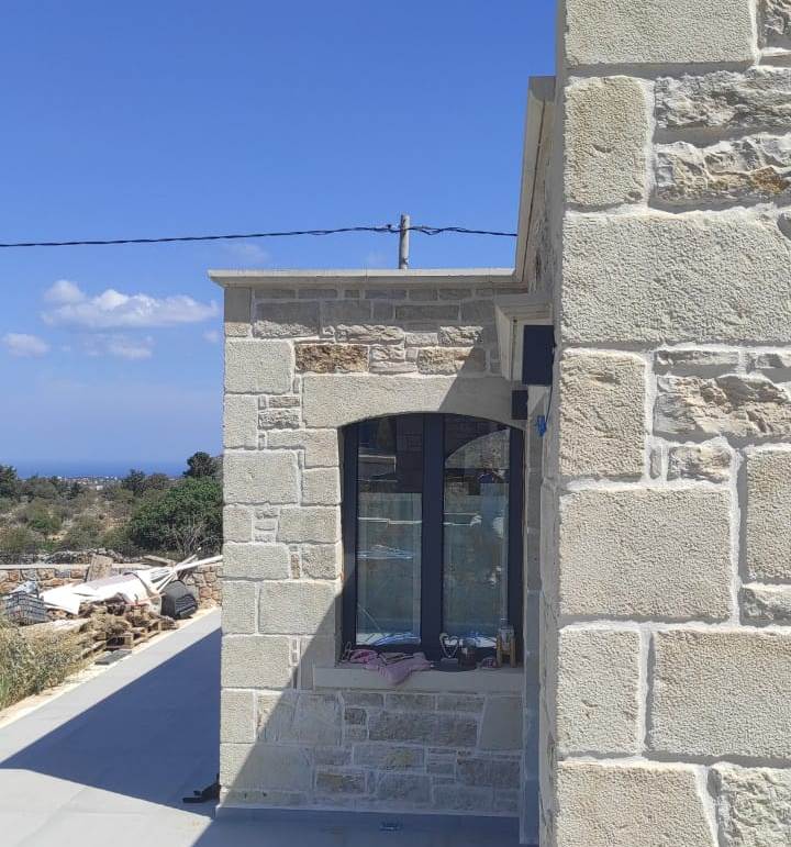In Litsarda, a peaceful and picturesque village in Crete, a stunning 144 sq.m. stone-built villa with a private pool and unobstructed sea and countryside views is available for sale. The residence was completed in 2022 and is built on a 700 sq.m. plot.