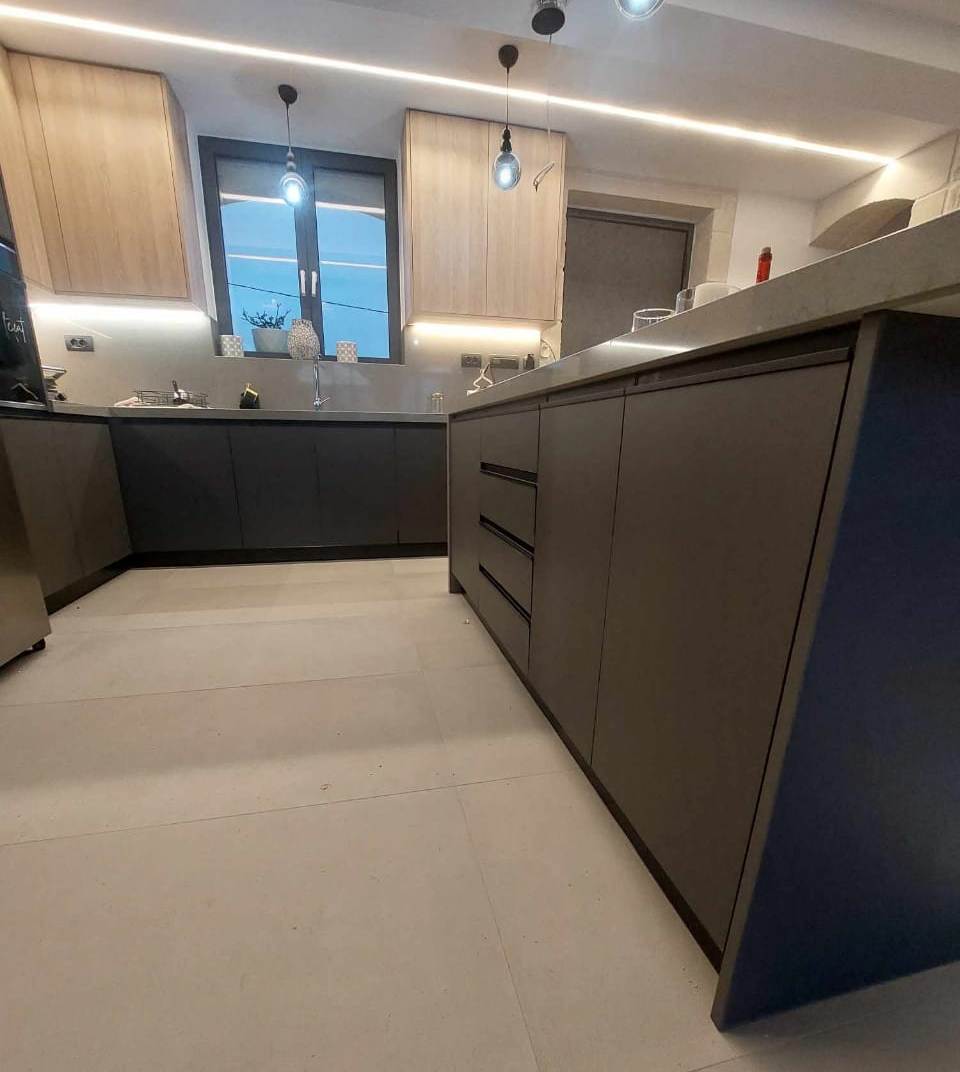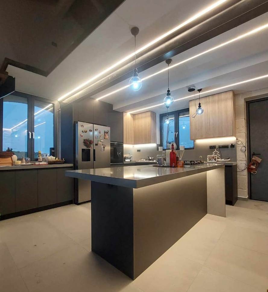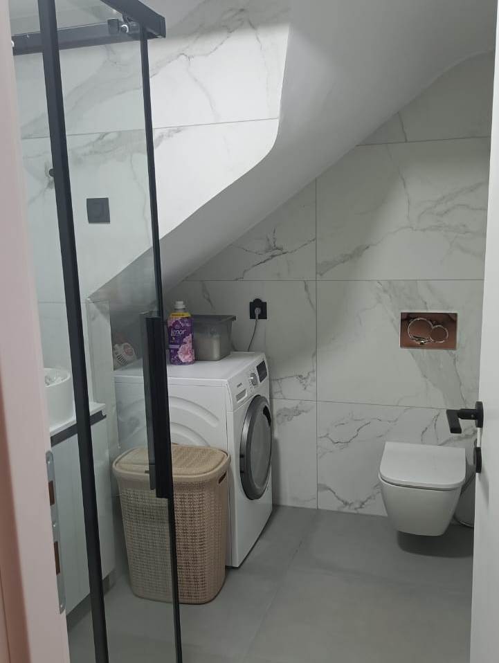 The villa is spread over two levels. The ground floor (96.67 sq.m.) features a spacious and bright open-plan living, dining, and kitchen area, a WC, and a master bedroom with an en-suite bathroom with a shower. A beautiful wooden staircase leads to the loft (17.92 sq.m.), which can be used as a third bedroom or office. Another staircase leads to the upper level (29.11 sq.m.), where there is an additional master bedroom with a private bathroom and access to a large terrace offering panoramic views of the sea and natural landscape.