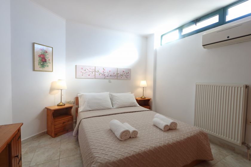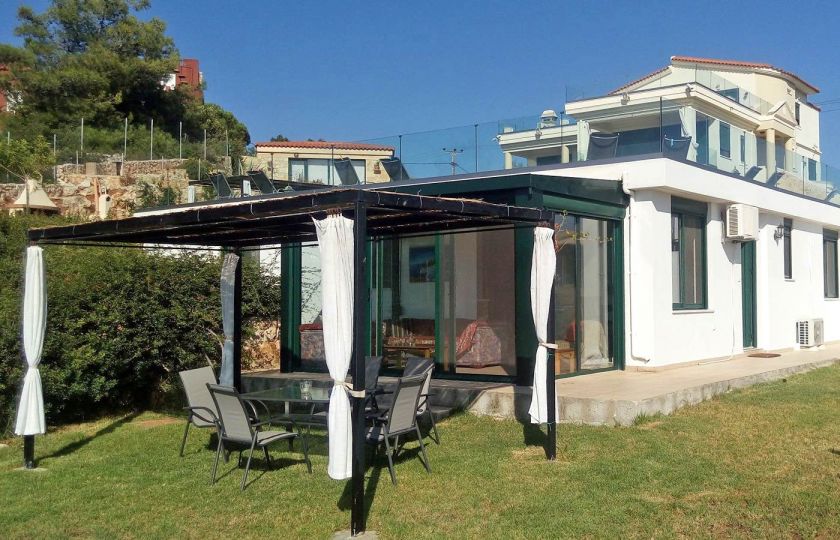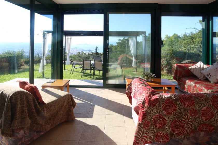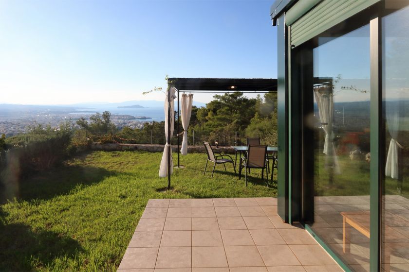 In front of the main building, there is an independent 100 sq.m. house, with a kitchen, living room, 3 bedrooms, 1 bathroom with hydromassage, and a veranda offering panoramic views of the bay of Chania. It also includes air conditioning (A+), electric shutters, security cameras, and parking.