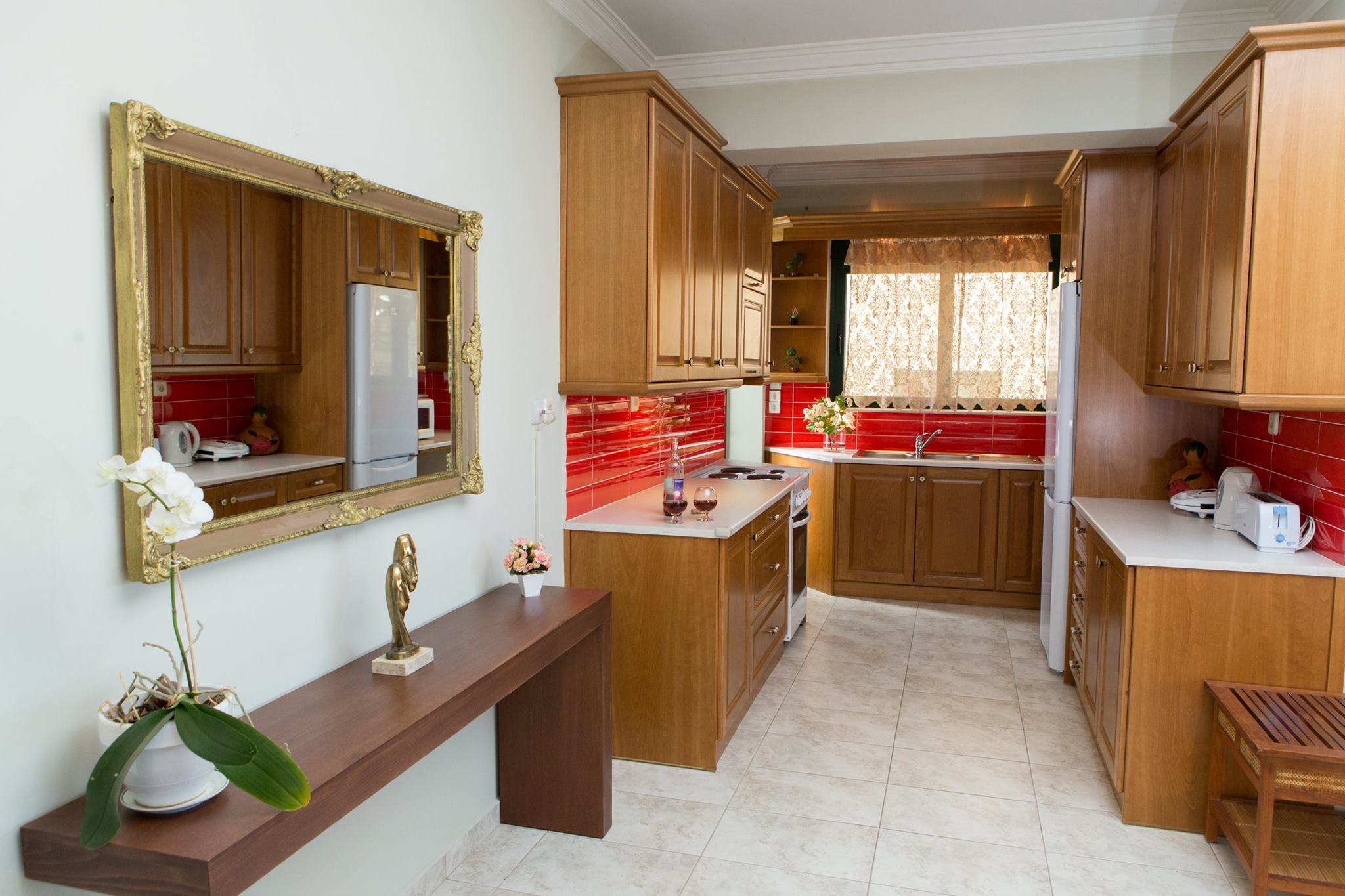 The main residence is a 280 sq.m. maisonette, occupying the 1st and 2nd floors. It includes a spacious living-dining area with a fireplace, a fully equipped kitchen with granite countertops, 5 bedrooms, a study room (which can also be used as an additional bedroom), and 2 bathrooms with hydromassage and Jacuzzi. The floors and internal staircase are made of high-quality marble, while the verandas and balconies offer unobstructed views of the city and the bay of Chania.