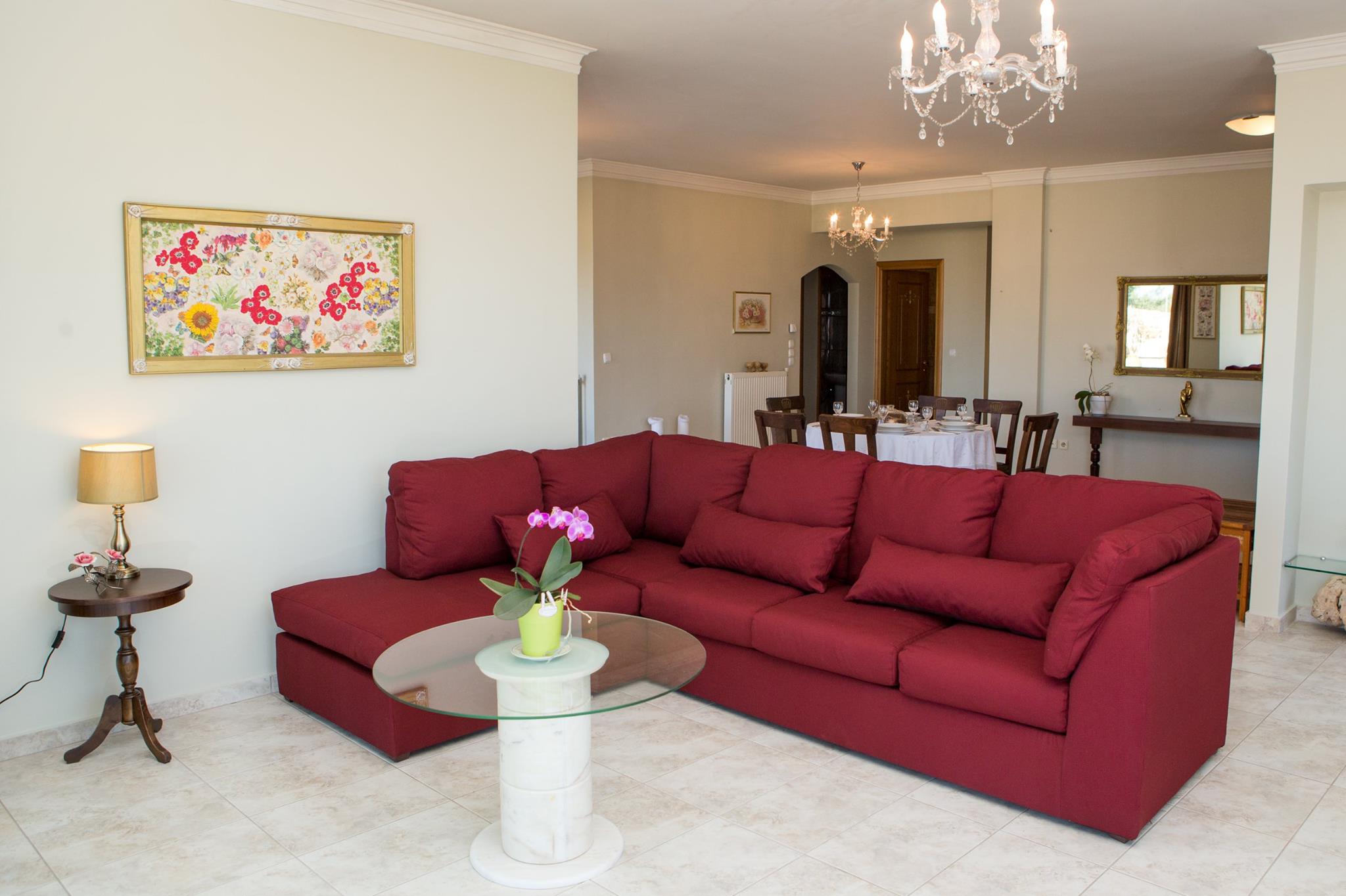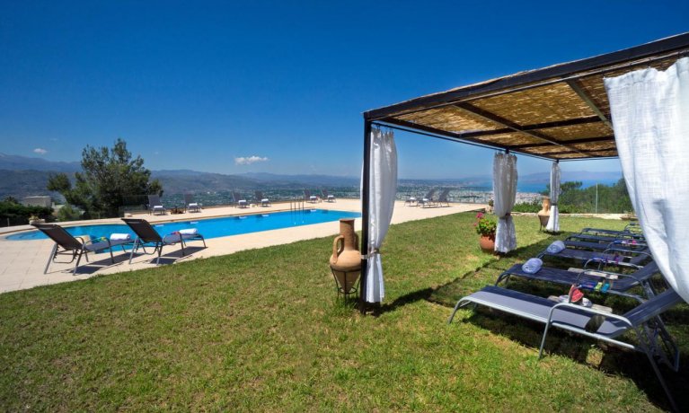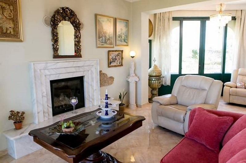 The property, located on the pine-covered hill of Agios Matthaios, offers unobstructed panoramic views of the city and the bay of Chania. It includes sunlit gardens with lawn, ornamental and aromatic plants, fruit and olive trees, a vineyard, organic vegetables, a waterfall with water lilies and fish, a courtyard, a small cave, a 100 sq.m. pool with hydromassage, a playroom, BBQ, an oven, and an automatic irrigation system.