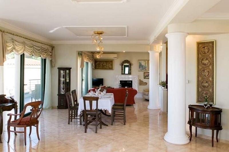 A 700 sq.m. villa in Korakies, situated on a 4,012 sq.m. plot, consists of 4 luxurious residences, each featuring bathrooms with hydromassage and Jacuzzi, air conditioning, verandas, electric windows, and a security camera system.