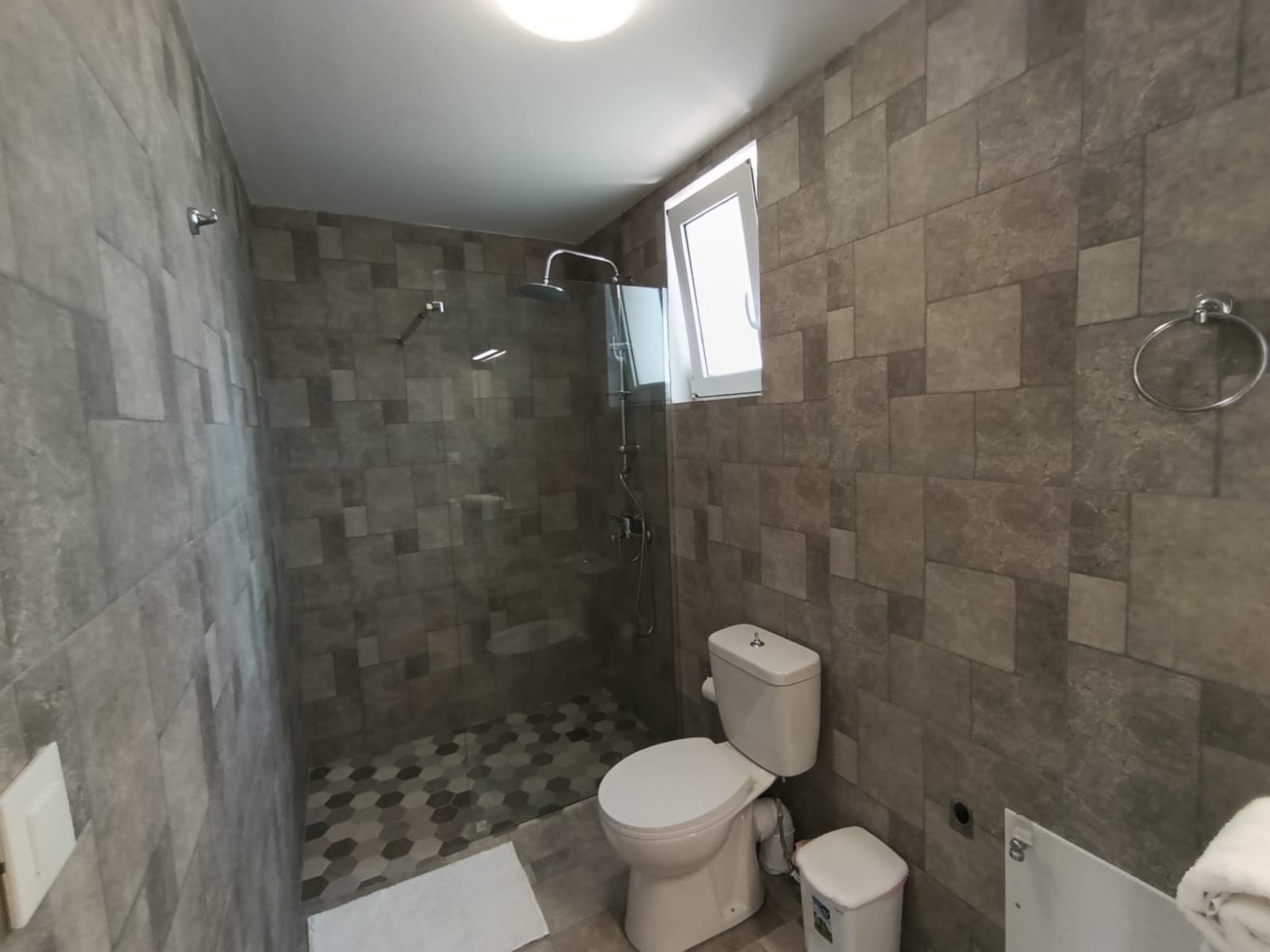 Στο δεύτερο επίπεδο του σπιτιού, όπου υπάρχει ένας μεγάλος, πολύ φωτεινός ενιαίος χώρος σαλόνι, κουζίνας και τραπεζαρίας και ένα ακόμα μπάνιο με ντουζιέρα.